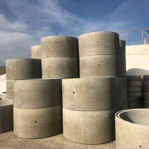 Кольца стеновые (КС): Используются для возведения стен колодцев и шахт. Кольца стеновые изготавливаются из высокопрочного бетона и могут включать различные типы соединений (замковые, фальцевые и др.) для обеспечения герметичности и устойчивости конструкции.